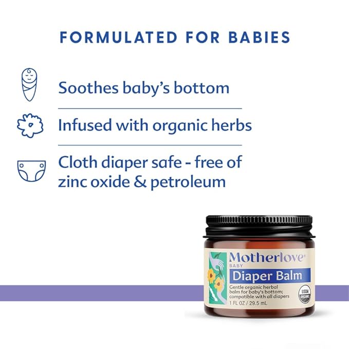 Motherlove Diaper Balm (1 oz) Organic Herbal Diaper Rash Cream—Cloth Safe, Zinc Oxide- Petroleum-Free—Ideal diaper Bag Size