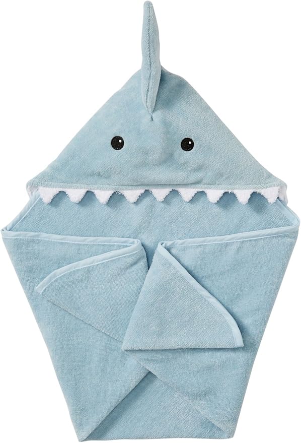 - Adorable Shark-Themed Bath Mitt – Bath time becomes playtime with the matching shark bath mitt that fits snugly on the hand for gentle, effective washing. Featuring black appliquéd eyes and 3-D accents, this mitt is made from soft terry to keep baby happy and clean. A favorite addition for parents looking for baby bath towels hooded with fun extras, this mitt pairs perfectly with the baby boy towels and hooded baby towels boy sets already loved for their charm and utility.