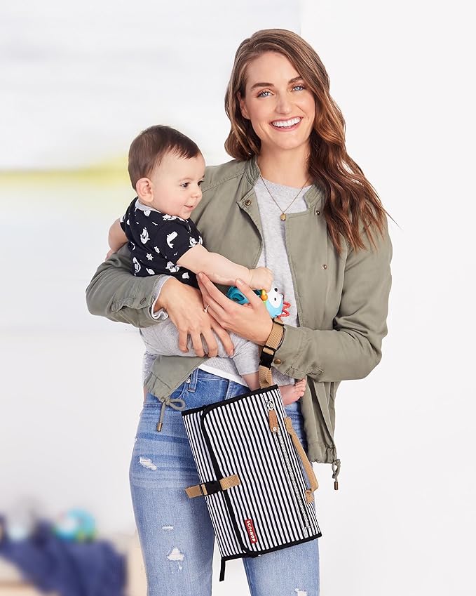 Skip Hop Pronto Signature Portable Changing Mat, Cushioned Diaper Changing Pad with Built-in Pillow, Black Stripe