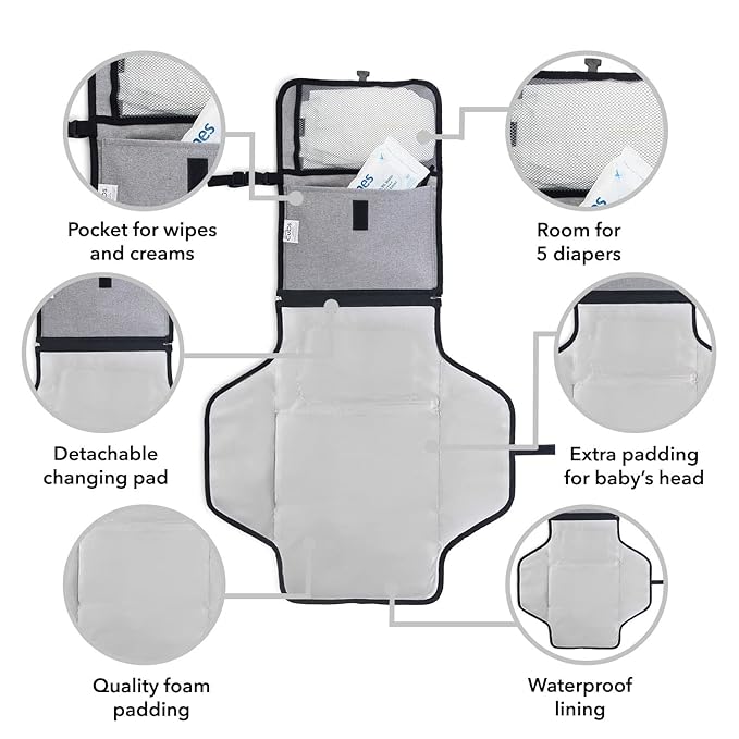 - Portable and Lightweight Design: Easily carry this baby changing mat wherever life takes you. This foldable changing pad design transforms into a compact clutch, making it the ideal baby travel essential.