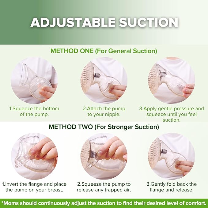 - VERSATILE PUMPING TOOL WITH ADJUSTABLE SUCTION: Uses suction for manual pumping and can also collect let-down while held or in a pumping bra without suction. Adjust suction strength by controlling the air expelled—more air out means stronger suction.