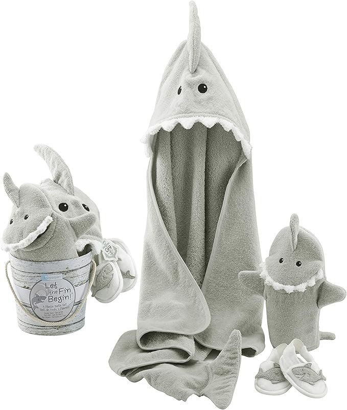 - Bath Time - Wrap baby in a cute shark themed hooded towel to keep them dry and warm after bath time!