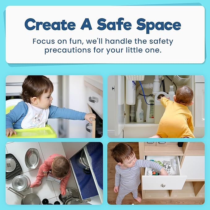 - EASY AND DAMAGE-FREE INSTALLATION - No tools required! These are installed using strong 3M adhesives. You won't need to drill holes and screws into your cabinets, drawers and cupboards, and the adhesives can be removed without leaving marks. This is especially useful for renters. Your furniture won't have to be damaged to protect your curious children.