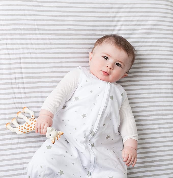 - Soft & Gentle Comfort – Made from 100% jersey cotton for a soft, breathable, t-shirt-like feel that’s gentle on baby’s delicate skin, perfect for a gender-neutral nursery in Grey Splash & Stripes.