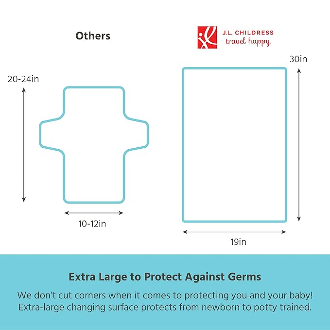 - GENEROUS SIZE: Our extra-large changing pad folds compactly (6.5"x10") to fit inside a diaper bag. When open, the 30" x 19" changing surface accommodates your newborn to almost-potty-trained toddler