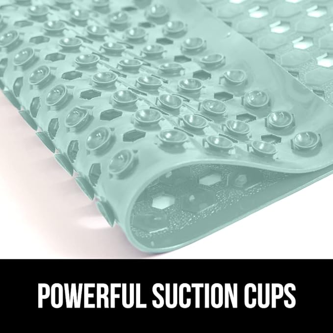 GORILLA GRIP Patented Bath Tub Shower Mat, Machine Washable Bathtub Floor Liner Mats, Suction Cups and Drain Holes to Keep Tubs Clean, Soft on Feet, Bathroom Essentials, 35x16 Inch, Mint Opaque