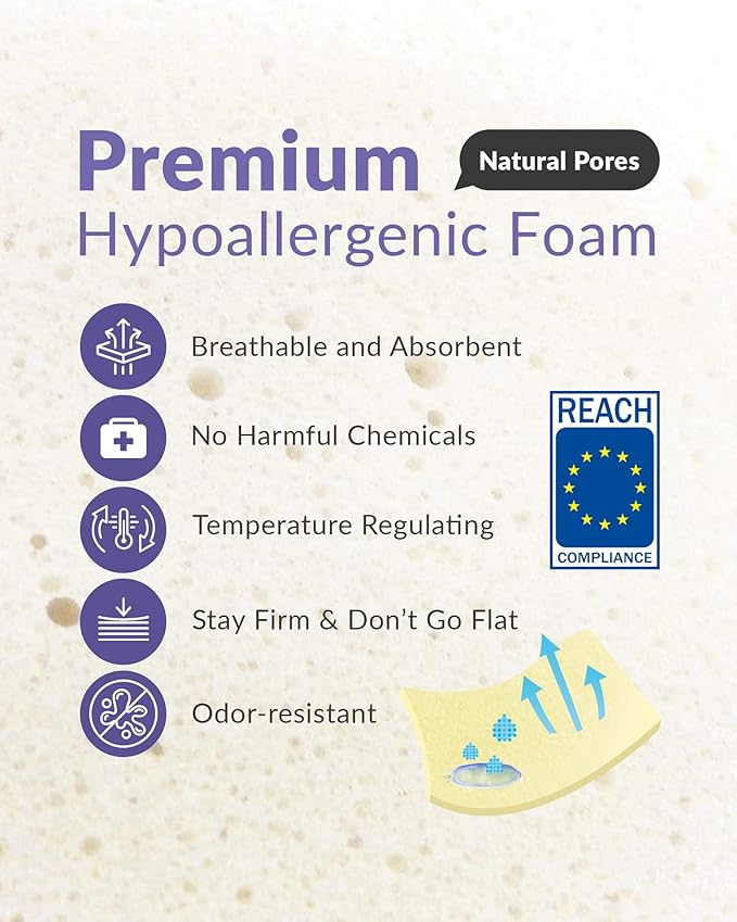 - INNOVATIVE BREATHABILITY: The ultra-absorbent and breathable foam solves the heat retention problem that appears in most pillows. Most importantly, it's skin-friendly, so you don't need to worry about causing any skin reactions to your baby. It leaves a dry and odor-free surface for bub to snuggle with. The fabric of the pillowcase is also superior in retaining its freshness by eliminating excessive moisture and foul smell to stay healthy—ideal for protecting sensitive skins.