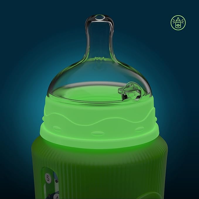Smilo Baby Bottle Set with Stage 0 Slow Flow Anti Colic Nipple, 5 Oz / 150 ml Capacity, 3X Pack of Anti Colic Baby Bottles 0-3 Months - Glow in The Dark