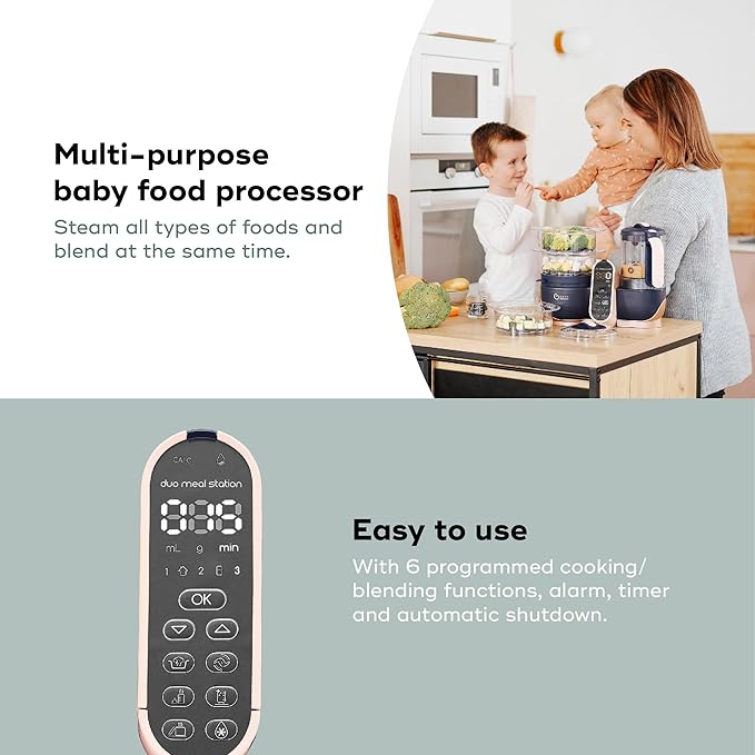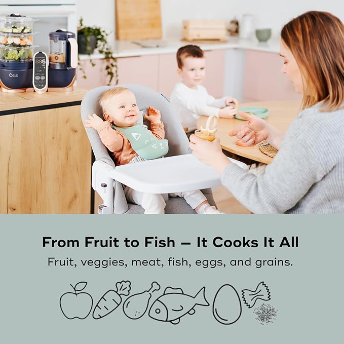 - 6-in-1 design saves SPACE: all-in-one design to cook, blend, warm and defrost baby food, plus use as a bottle warmer and sterilizer. This all-in-one food prep machine reduces countertop clutter and is a baby registry must-have.