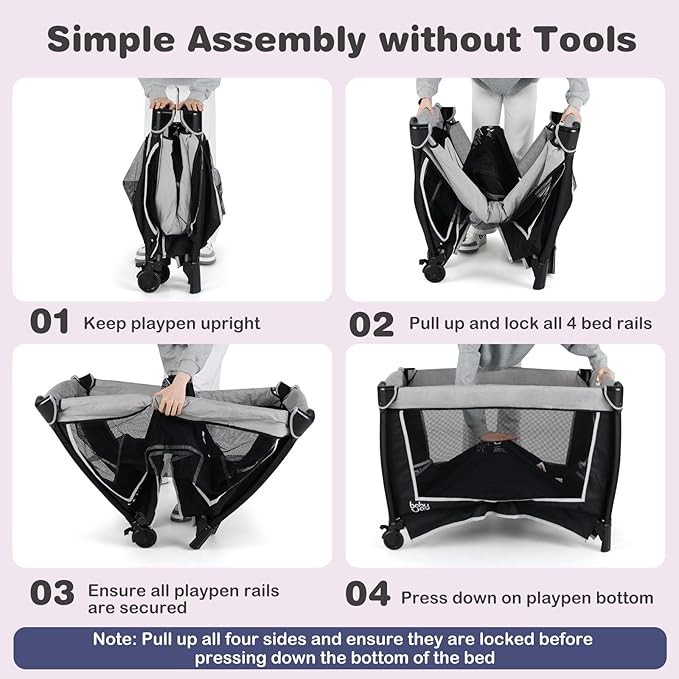 - 【Skin-Friendly Materials & Safe Details】 Our bed are made of breathable and skin-friendly fabrics, so babies can use them at ease.7-point supporting structure on the bottom comes with more steadiness. And the sturdy frame is made of iron tubes, which supports up to 35 lbs. Four round corners avoids bumping and scratching.