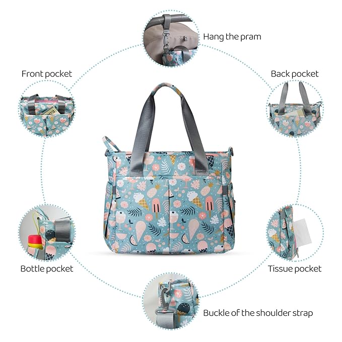 Diaper Bag Tote Satchel Waterproof Messenger Baby Diaper Bags for Mom and Dad Multifunction Medium Travel Tote Bags(Cartoon Dessert)