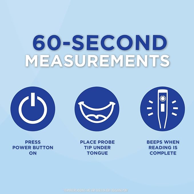 - Fast, reliable measurements in approximately 10 seconds; oral, rectal, or underarm use.
