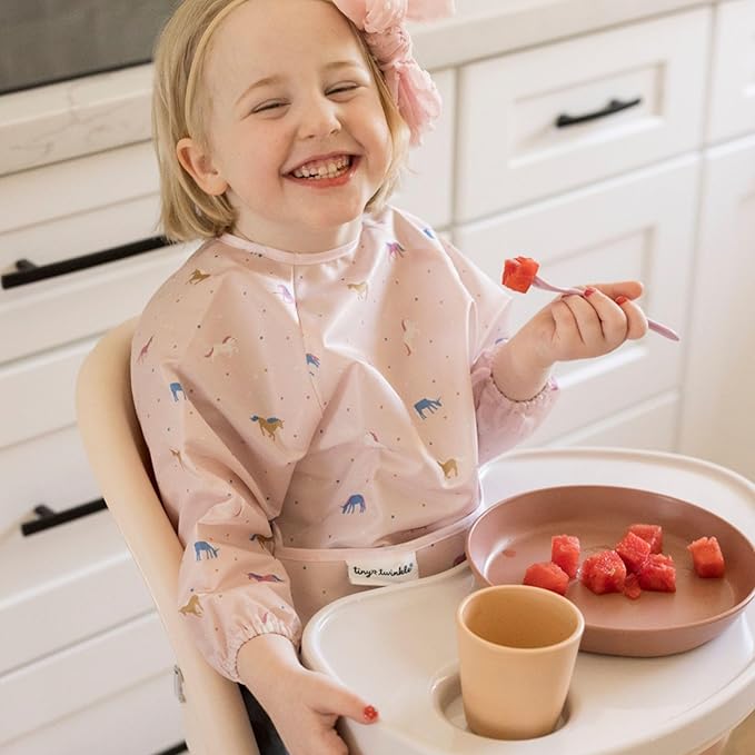 Tiny Twinkle Long Sleeve Bib for Babies & Toddlers | Waterproof Smock Bib for Eating | Machine Washable & Mess-Proof Feeding Essentials | Newborn Shower Gift (Unicorn Confetti, 6–24M)