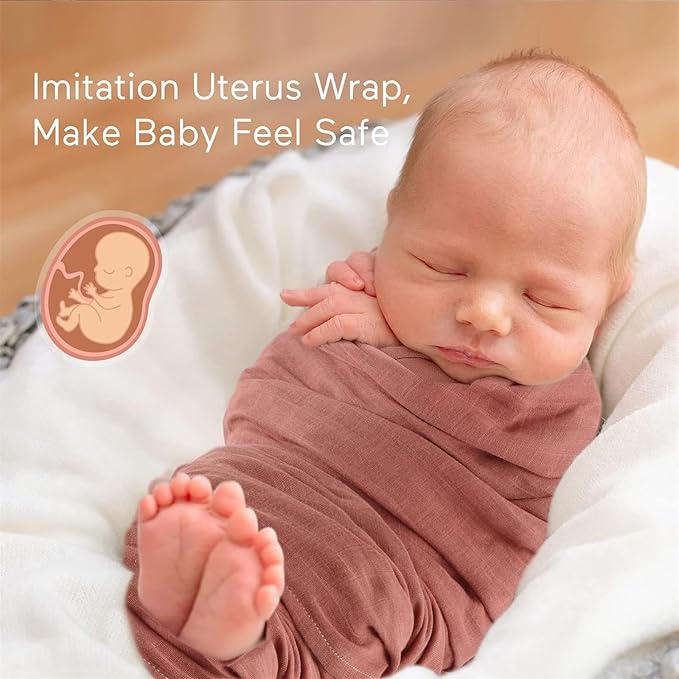 - No More Sleepless Nights: 47" x 47" (120 cm x 120 cm). Momcozy muslin swaddle blankets are all large enough to wrap more securely from shoulder to foot, recreating the security and comfort of the womb, minimizing the need for babies to wake up from their sleep, and also have some stretch to keep babies comfortable.
