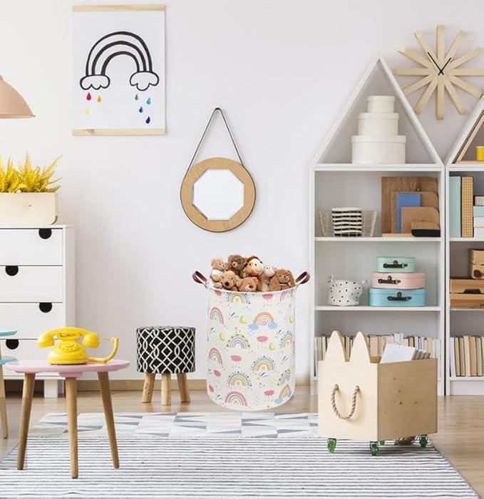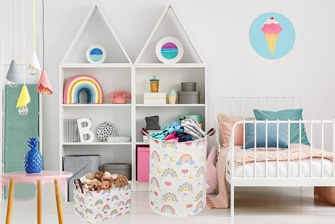 ESSME Rainbow laundry basket,Collapsible Kids Laundry Hamper with Waterproof PE Coating,Girls Hamper Nursery Hamper for Girls Room Decor,Toy storage,Gift Basket.(Rainbow)
