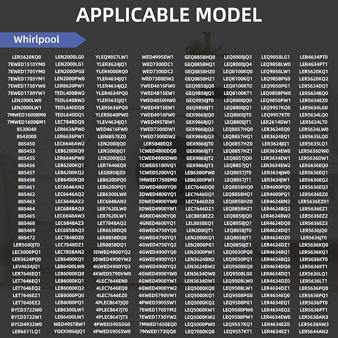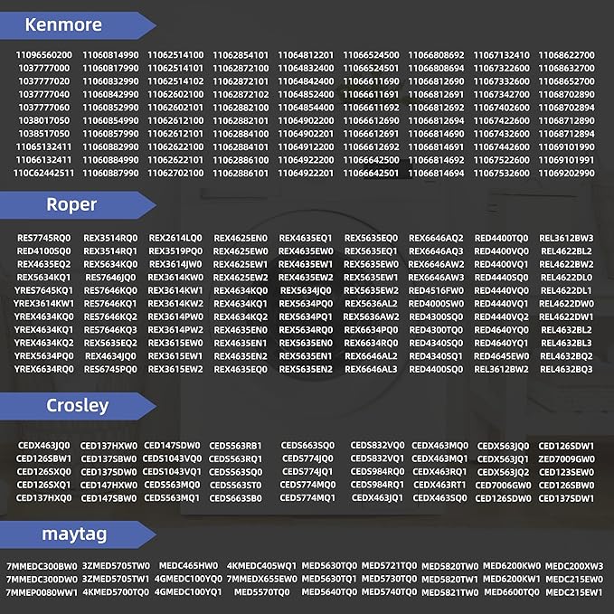 - Compatible dryer models: 279838 dryer heating element parts compatible with Whirlpool WED4815EW1 WED4800XQ0 WED4800BQ1 WED5300SQ0 WED6400SW1,Maytag MEDC215EW1 MEDC415EW0 MEDC555DW2,Kenmore Kenmore 70 80 90 300 400 500 600 series model 110,Amana NED4655EW1 NED4700YQ1 NED4800VQ1 NED5200TQ0,Roper REX4625EW1 REX5635EN2 REX5635EN2 RED4340SQ0 and more.Please refer to the attached table for detailed models.If you do not confirm, please contact us immediately. We will reply you as soon as possible.