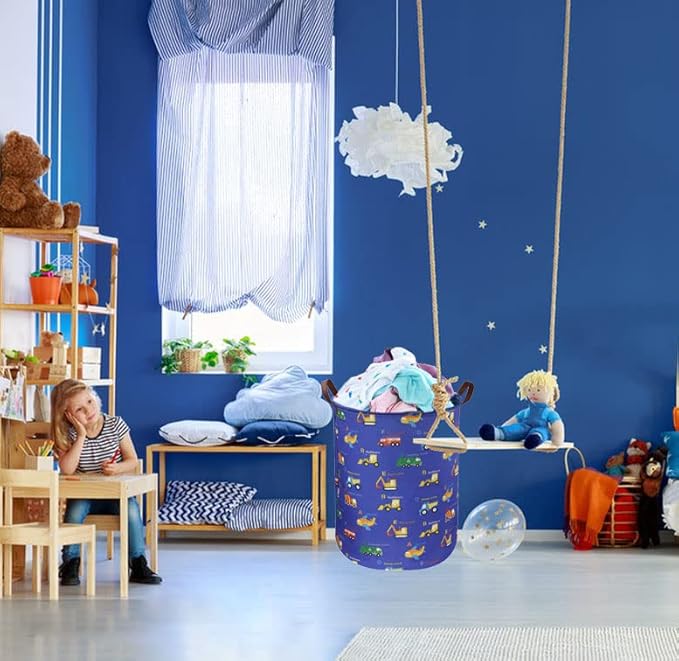 ESSME Kids Laundry Basket,Kids Hamper Collapsible Canvas Car Storage Bin for Boys Room Decor, Nursery Hamper,Gift Baskets,Toys,Home Organizer(Vehicles)