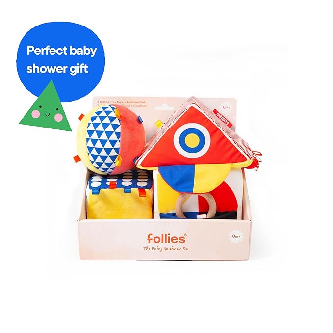The Baby Bauhaus Set, Jumbo Soft Baby Blocks with Rattle Ball and Mirror from Follies, 0 to 18 Months, Newborn Gift, Award Winning Montessori Developmental Sensory Toys