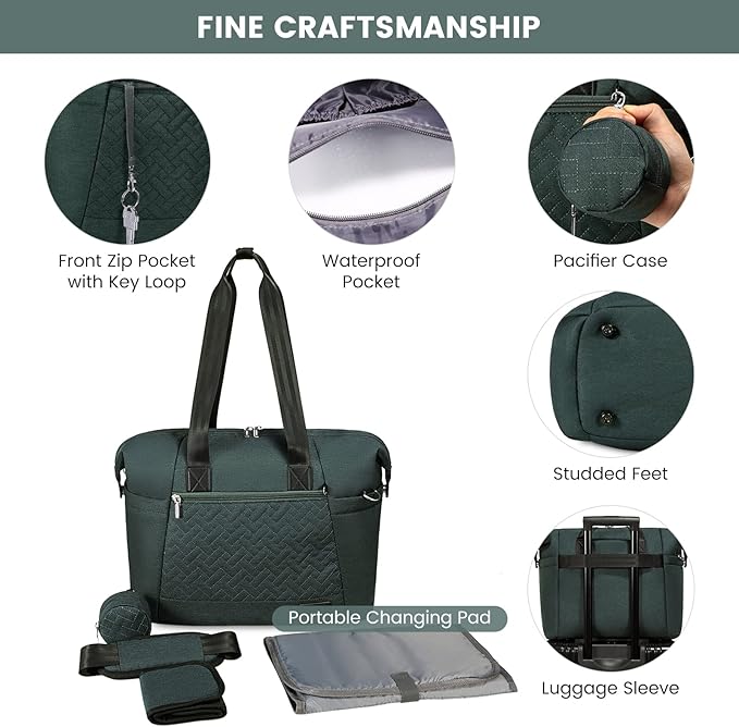 - 【Easy to Carry】-- Baby diaper bag with portable changing pad is equipped with a detachable shoulder strap, flexible carrying method allows you to easily carry baby bag as a crossbody bag, shoulder bag or handbag.The handy Luggage sleeve design makes travel a breeze