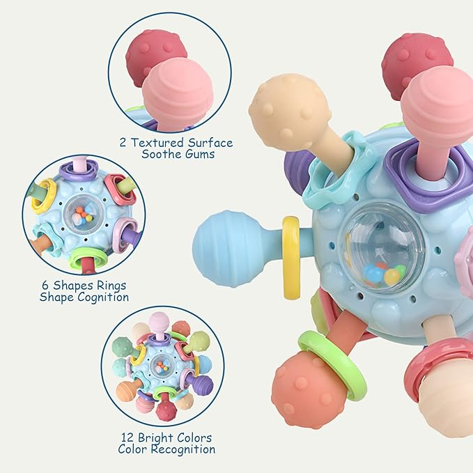 - Idea Gifts for Newborns and Infants : Teething toys for 0-6 months, chew toys for 3-6 months, crawling toys for 6-12 months, and rattles toys for 12-18 months. Perfect for travel, birthdays, Christmas, and Easter. Let your baby enjoy a great sensory exploration.