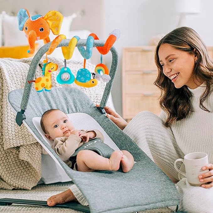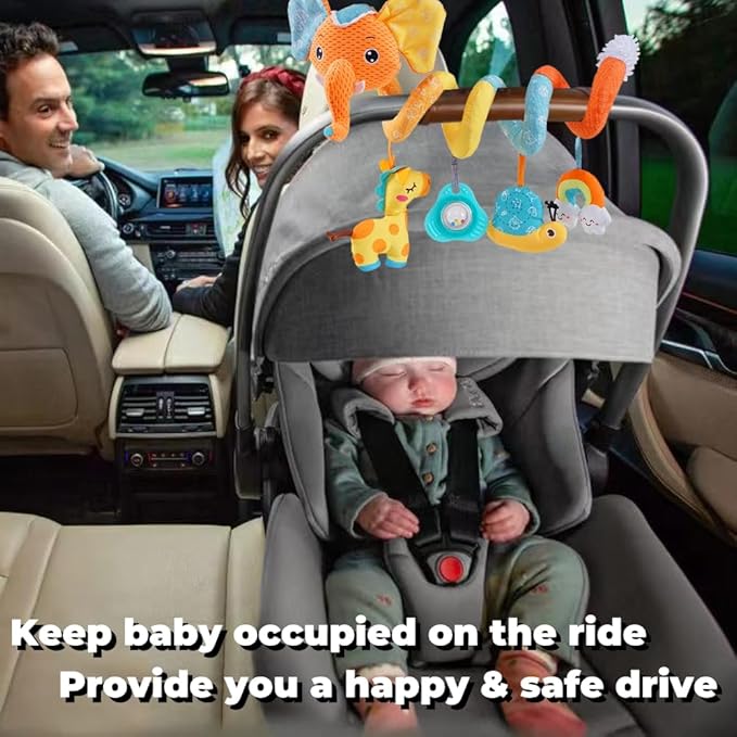 - ⇰ Must Need for Infants: You can easily wrap the spiral activity elephant toys for infants 0-6 months around car seat handle, stroller bar, bassinet, swing, rocker, crib, etc. Allow baby to play anytime. Especially great for car seat & stroller toys, will be a baby-sitter to accompany baby while on the road trip.