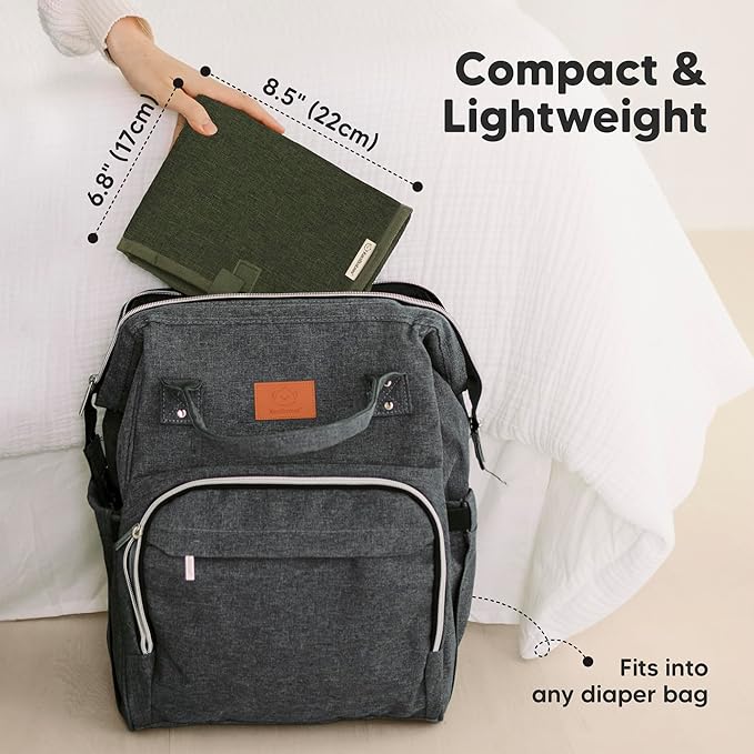 KeaBabies Portable Diaper Changing Pad, Easy Wipe Clean - Foldable Waterproof Baby Changing Mat for Diaper Bag, Compact, Lightweight, 25x13 Newborn, Infant, Baby Changer Travel Essential (Dark Olive)