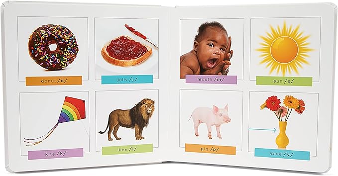 - SmartNoggin’s Baby’s First Book of 44 Sounds: has all 44 sounds of American English in a colorful board book that is ready to help start a baby on their language and literacy journey. This book allows your baby to hear each sound used in a word and then pronounced in isolation, with the goal of helping your baby’s brain strengthen the neural connections needed to speak and read in the months and years ahead.