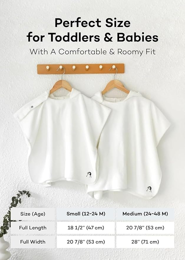 - Our recommendation for choosing Size; 1) S SIZE (Age 1 to 2 years, Height below 33 Inches) 2) M SIZE (Age 2 to 4 years, Height between 33 and 37 Inches) *Konny recommends choosing the Poncho size according to the babys height due to a Safety Issue.