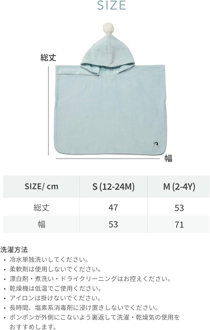 - Our recommendation for choosing Size; 1) S SIZE (Age 1 to 2 years, Height below 33 Inches) 2) M SIZE (Age 2 to 4 years, Height between 33 and 37 Inches) *Konny recommends choosing the Poncho size according to the babys height due to a Safety Issue.