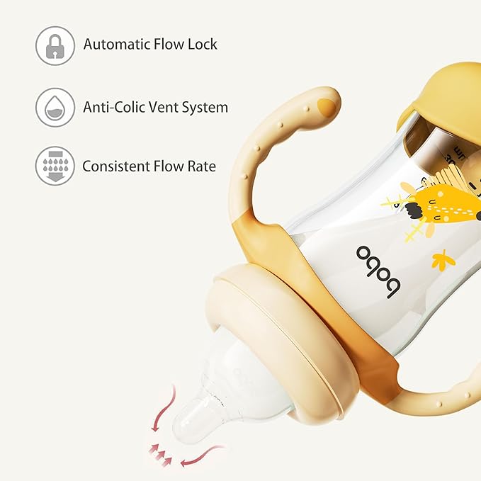 - Our baby bottles also come with a unique gravity ball design that allows your baby to drink at will. The bottom is equipped with a thick rubber cover to make the bottle more stable. Removable handle makes it easier for your baby to hold.
