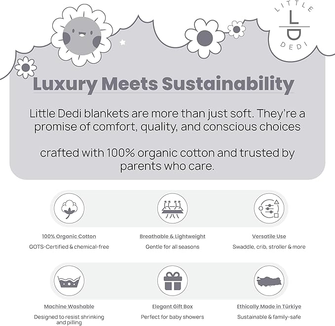 - [SUSTAINABLE AND ETHICAL PRODUCTION]: Made in Türkiye at the Evteks sustainable factory, this baby blanket combines eco-conscious manufacturing with high-quality craftsmanship. Parents love that this product is ethically made using renewable energy and sustainable materials. GOTS certification ensures it meets strict environmental standards. Add this trusted product to your nursery and join a community of families who care about their baby’s comfort and the planet.