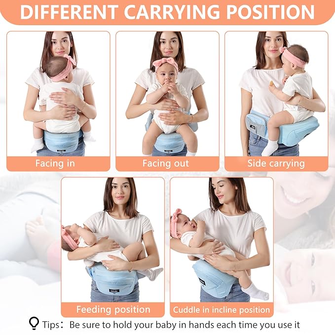 - Newborn to Toddler Versatility: HKAI hip seat is suitable for newborns to 36 months (or up to 44 lbs); offers multiple carrying positions including facing in, facing out, side carry, and feeding position; designed to maximize comfort for both baby and parent