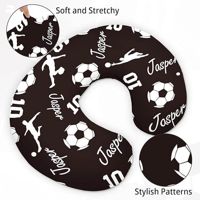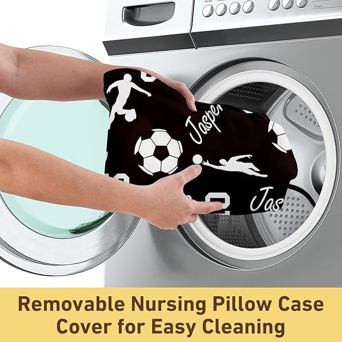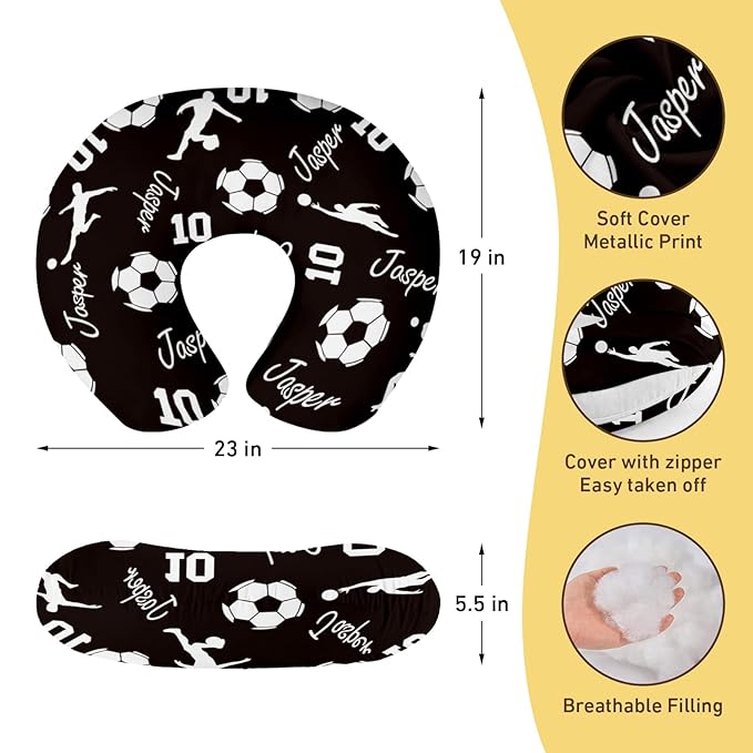Rucekia Baby Nursing Pillow Cover - Personalized Name Soccer Theme Breastfeeding U-Shaped for Bottle Feeding, Ultra Soft Comfortable Breastfeeding Pillow Cover for Infants Baby Boys and Girls