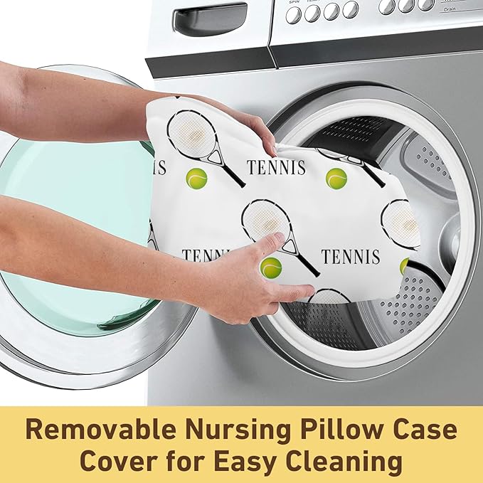 Rucekia Baby Nursing Pillow Cover - Personalized Name Tennis Theme Breastfeeding U-Shaped for Bottle Feeding, Ultra Soft Comfortable Breastfeeding Pillow Cover for Infant Baby Boys and Girls
