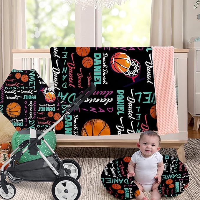Rucekia Baby Nursing Pillow Cover - Personalized Name Basketball Theme Breastfeeding U-Shaped for Bottle Feeding, Ultra Soft Comfortable Breastfeeding Pillow Cover for Infant Baby Boys and Girls