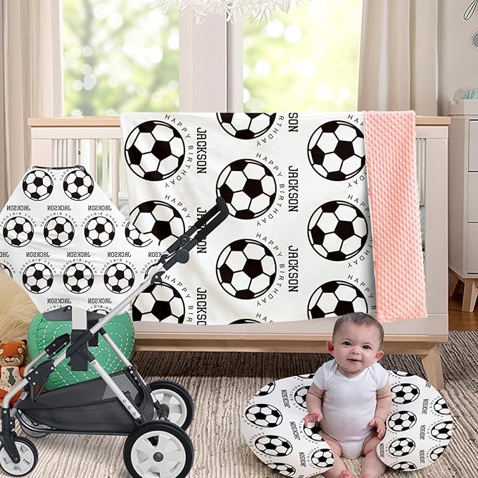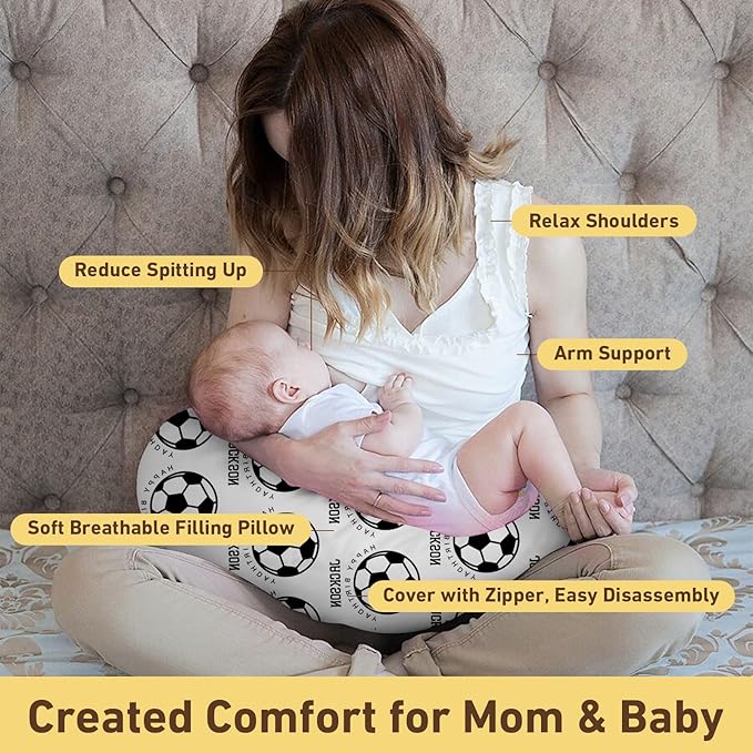 Rucekia Baby Nursing Pillow Cover - Personalized Name White Soccer Theme Breastfeeding U-Shaped for Bottle Feeding, Ultra Soft Comfortable Breastfeeding Pillow Cover for Infant Baby Boys and Girls