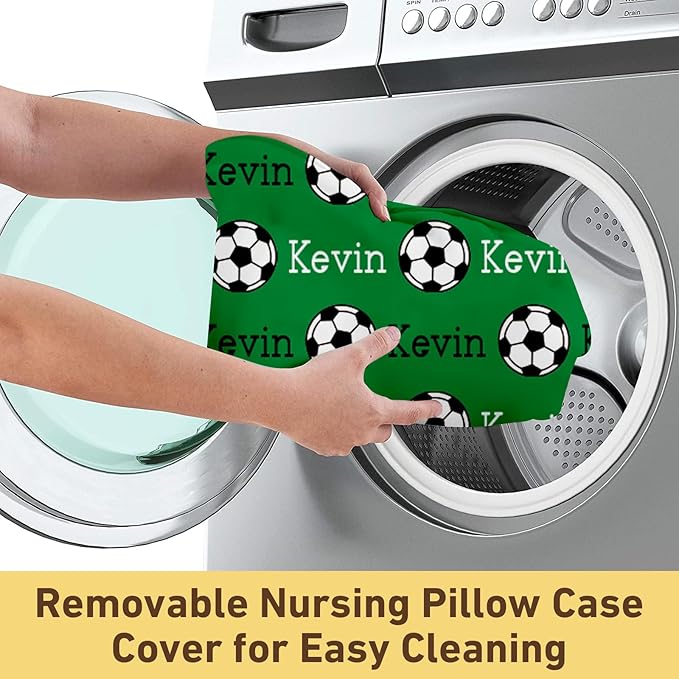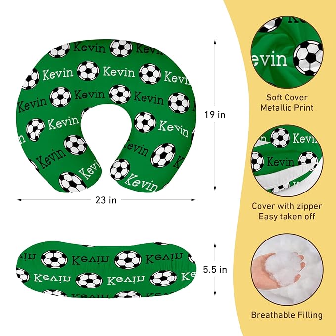 Rucekia Baby Nursing Pillow Cover - Personalized Name Green Soccer Theme Breastfeeding U-Shaped for Bottle Feeding, Ultra Soft Comfortable Breastfeeding Pillow Cover for Infant Baby Boys and Girls