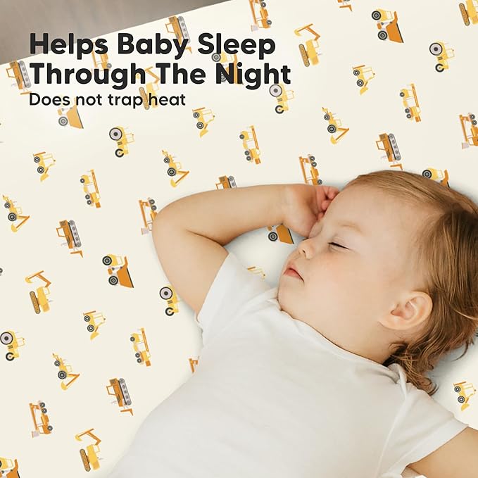 2-Pack Mini Crib Sheets Fitted - 38x26 Pack N Play Sheets for Pack and Play Mattress, Organic Cotton, Soft & Breathable Playard Bedding, Neutral Mini Toddler Bed Cover for Boys, Girls (Construction)