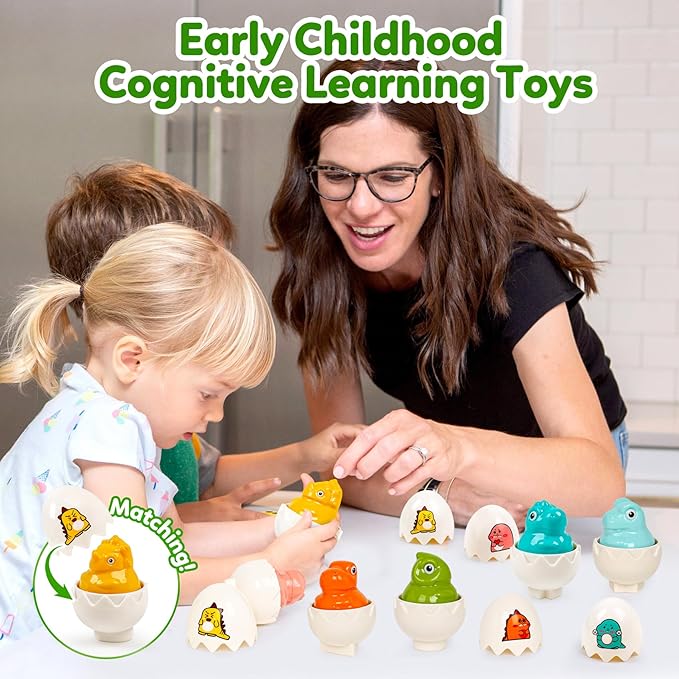 - Dinosaur Toys:Unique matching egg toys set features realistically shaped eggs with adorable dinosaur faces hidden inside, by opening and closing the eggs and matching the chink,toddlers practice hand-eye coordination, dexterity, and the ability to manipulate small objects,creating a delightful surprise for toddlers as they crack open the eggs.