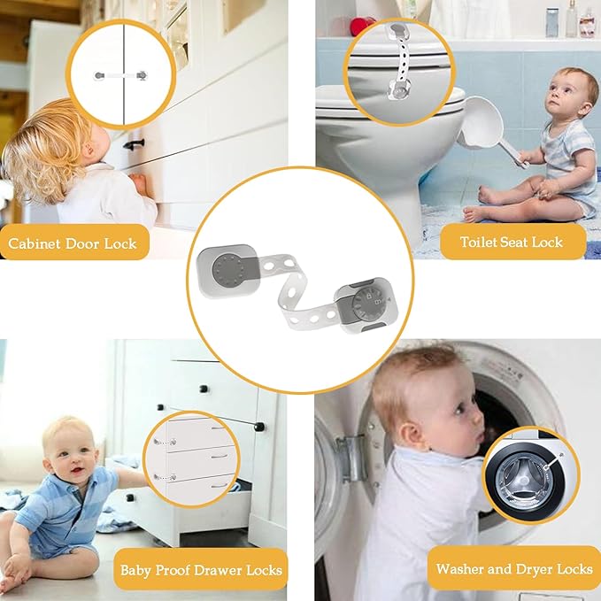 - Double Lock System: Baby Proofing Child Safety Locks Strap designed with double locking system rotary function, no need complicated passwords. easy open for adult, but it's hard to open for toddlers and children