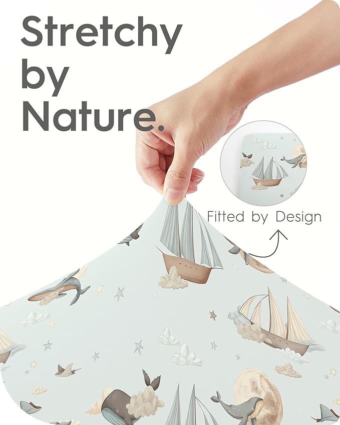 TotBasic Premium Soft Boho Changing Pad Covers for Girls & Boys - Stretchy Jersey Sheets - Fits Standard Changing Tables - 2 Pack (Whale Dreams)