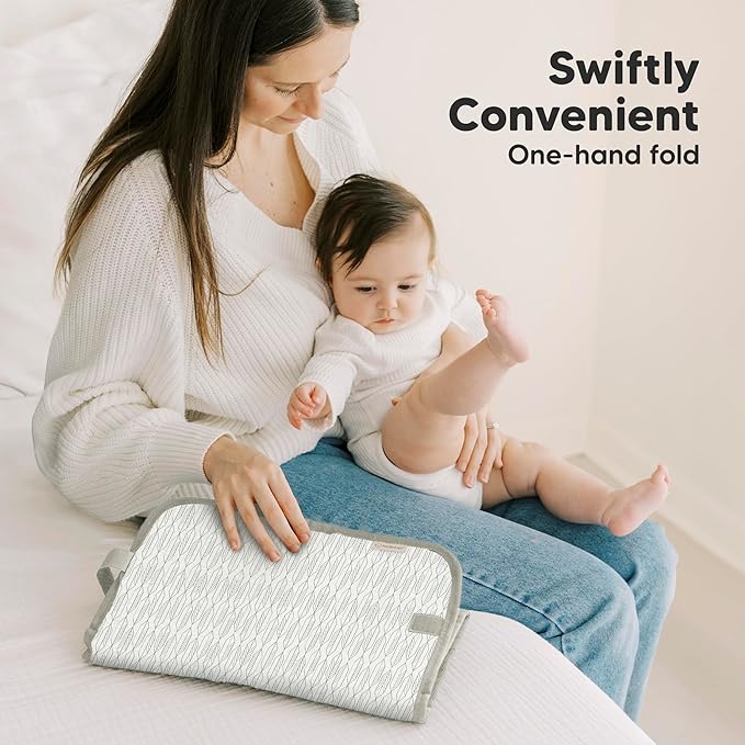 - Compact Folded Size - Our Portable Changing Pad is foldable into a clutch-sized 6.8" by 8.5" | 17cm by 22cm pad, taking up minimal space in your diaper bag. Perfect for on-the-go parents, it's an ideal travel changing pad for a day out!