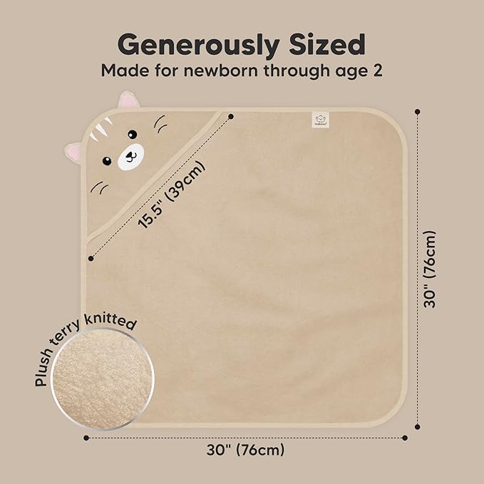 KeaBabies Hooded Baby Towel for Newborn - Viscose Derived from Bamboo Large Baby Bath Towels with Hood for Boys, Girls, Toddler, Extra Absorbent & Soft Newborn Bath Essentials (Cat, Petite)