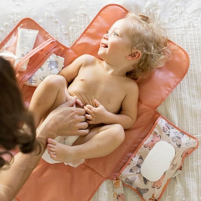 - QUICK WIPES ACCESS: The built-in wipes pocket on our foldable changing pad allows for fast, one-handed access—so you can instantly grab wipes and handle diaper changes smoothly, keeping every change calm, clean, and stress-free.