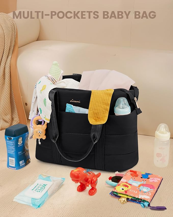 - Multi-pockets: This baby bag has three pockets on the outside for easy access to items. There are three insulation compartments on the inside for baby bottles, and the other three compartments can hold baby's small items. Casual mommy tote bag Can accommodate daily travel items for baby and mother.