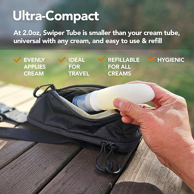 - TAKE IT ANYWHERE: Swiper Tube with Tush Swiper was designed for family travel adventures. Now offered with our own integrated, TSA-friendly silicone tube that you can refill again and again for at home or on-the-go. No need to buy multiple tubes of your favorite cream, simply buy the Swiper Tube and refill for a cost effective solution.