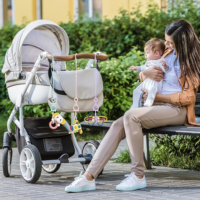 - Versatility at Its Best: Baby travel essential toy tether can be used for strollers, baby high chairs, pacifier clips, teethers, car seat toys, baby sucking toys, sippy cups, and baby cribs. They can be taken out to play at any time, whether the baby is eating, crying, bathing, or traveling. Say goodbye to dropping and searching for misplaced baby essentials.