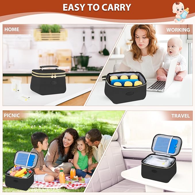 - Included Components : 1* Breastmilk Cooler Bag(Black), 2* Ice Pack