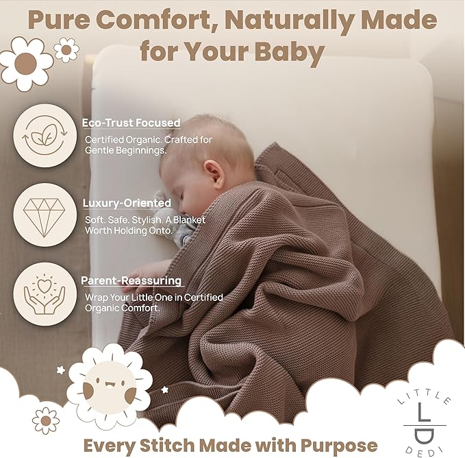 Little Dedi 100% Organic Cotton Baby Knitted Blanket with Gift Box - Soft Toddler, Crib, Stroller Blanket - Neutral Swaddle and Receiving Blanket for Newborns, 30"x40", Mocha Meringue