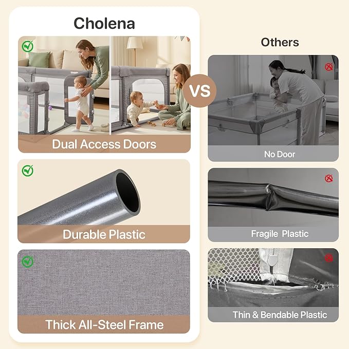 - đ¸ăEasy Assemblyă: Cholena playpen comes with clear, step-by-step instructions, so you can set it up quickly and hassle-free. If you have any questions along the way, just reach out to usâweâre here to help!